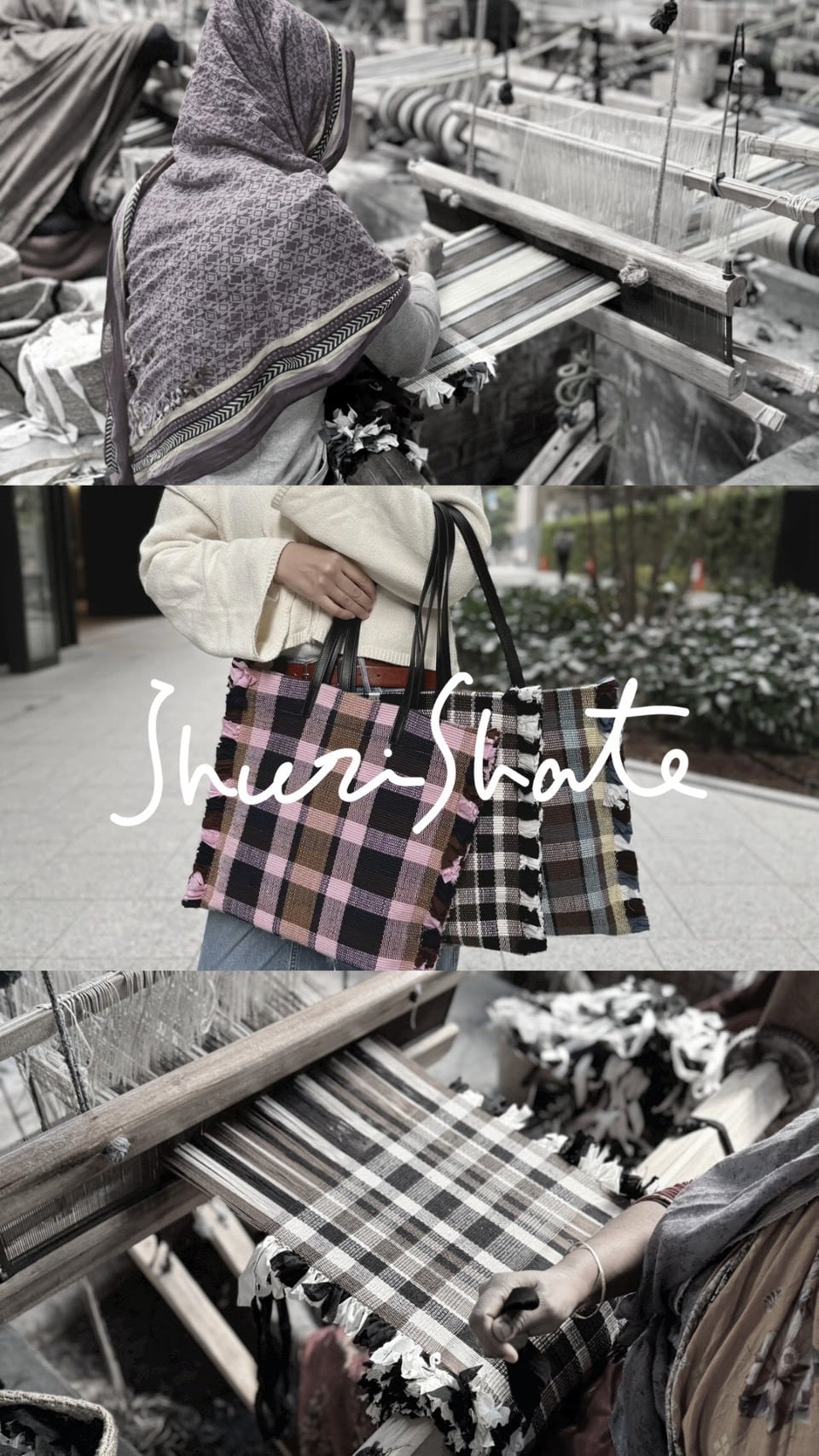 バングラデシュの北部の町、ボグラで生み出された伝統的なハンドルーム織物を使用したトートバッグ。横糸には生地を切り裂いたものを使用し、端の部分はフリンジのデザインに仕上げています。 A4ファイルや13インチのノートPCが入るやや縦型。牛革のハンドルは肩掛けし易い長さ。裏地は重さが出ないように薄手のシーチング。内装にポケットも付けました。 シンプルなコーディネートのアクセントになるフラットなトートバッグです。 <素材・カラー> 本体:綿 (縦糸 PINK、NAVY、CAMEL) (横生地 PINK、NAVY、BROWN) 裏地:綿(生成) ハンドル:牛革(BLACK) <SIZE> 本体:高さ36cm 横幅34cm(フリンジ含まず) ※ハンドメイドによる個体差有り ハンドル:58.5cm -Made in Bangladesh- <ATTENTION&CARE> [本体] ・この製品は手織り機によって一枚一枚織られた生地を使用しています。 ・手作業の特性上、織りムラ・糸節がございますが、手織りならではの風合いとしてお楽しみください。 ・横糸には生地を引き裂いたものを使用し、端の部分は断ち切りのフリンジのデザインに仕上げています。そのため、他のものへ糸くずが付着する場合があります。また、ほつれが気になる場合には無理に引っ張らずハサミなどで取り除いてください。 ・水濡れや摩擦などにより色落ちや色移りする可能性があります。 色の薄い衣類等と合わせて使用する場合は特にご注意ください。 [牛革] ・皮革の表面は傷がつきやすいので丁寧にお取り扱い下さい。 ・濃色品は水濡れ摩擦などにより色落ちすることがありますのでご注意下さい。 ・変色、脱色、変形する恐れがあるため、ベンジン等の汚れ落とし材は使用できません。また、アルコール除菌スプレーの付着にもこ注意下さい。 ・雨や水で濡れた際は乾いた布等で水分を拭き取り、風通しの良い場所で陰干しして下さい。