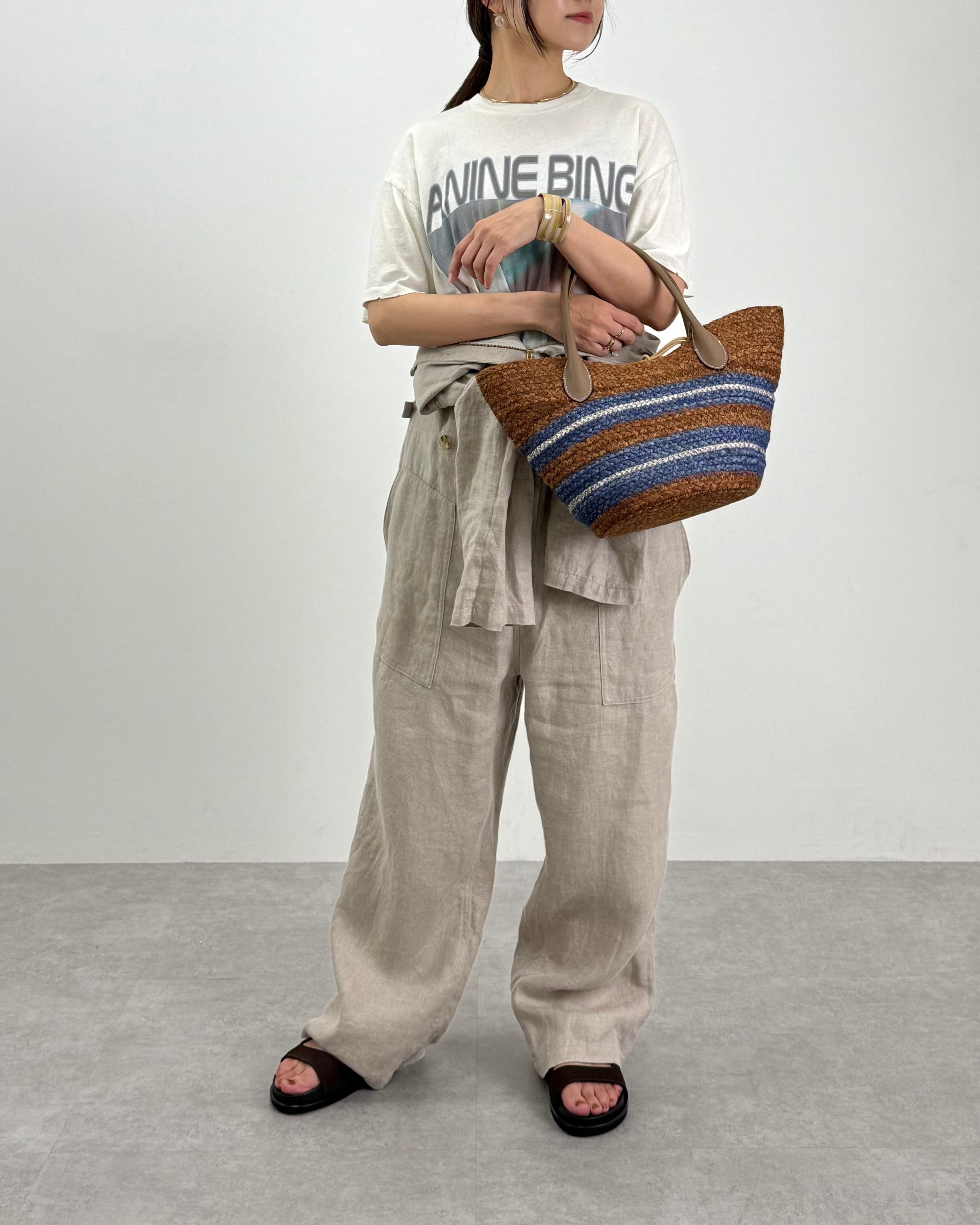 ▪レザーハンドルが全体を引き締め、ナチュラルな素材にさりげない上品さをプラス。